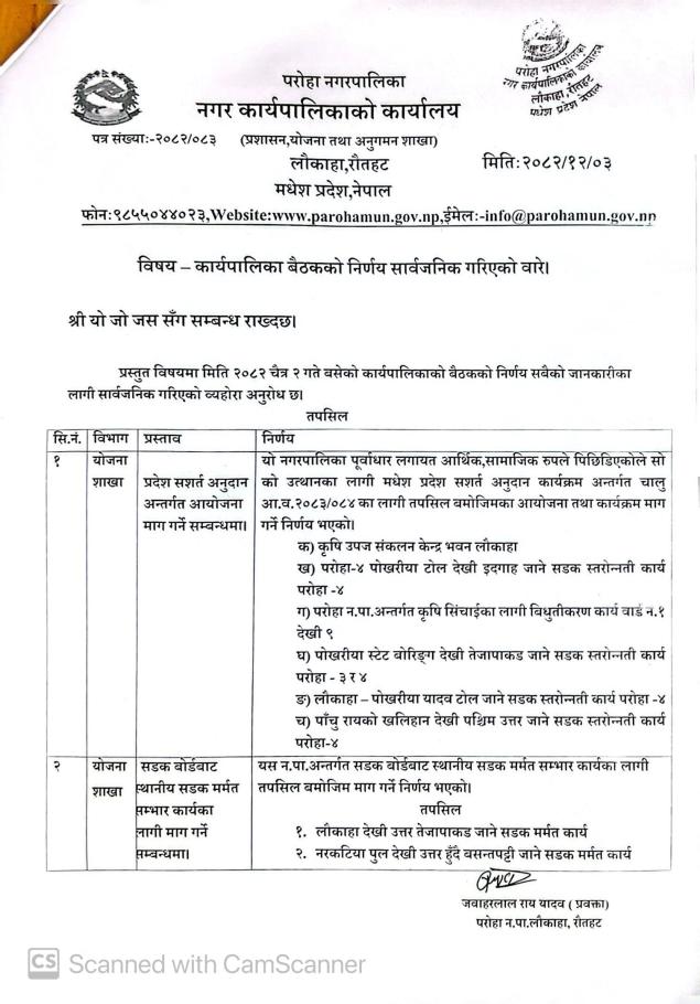 » कार्यापालिका बैठकको निर्णय सार्वजनिक गरिएको सम्बन्धमा ।