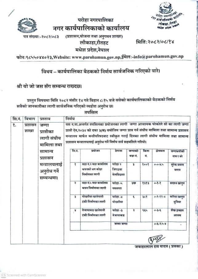 नगरपालिकाको निर्णय