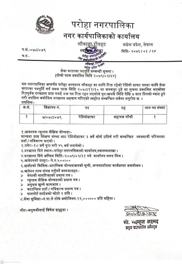 सेवा करारमा पदपुर्ति सम्बन्धमा सूचना ।