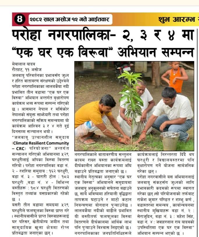 » CDMC का सदस्यहरुको एक घर परिवार एक वृक्षारोपन कार्यक्रमको झलक ।